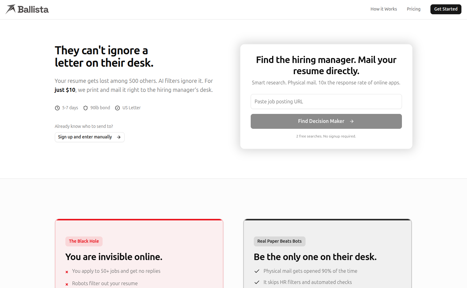 Send your resume directly to hiring managers via physical mail. Skip the filters.