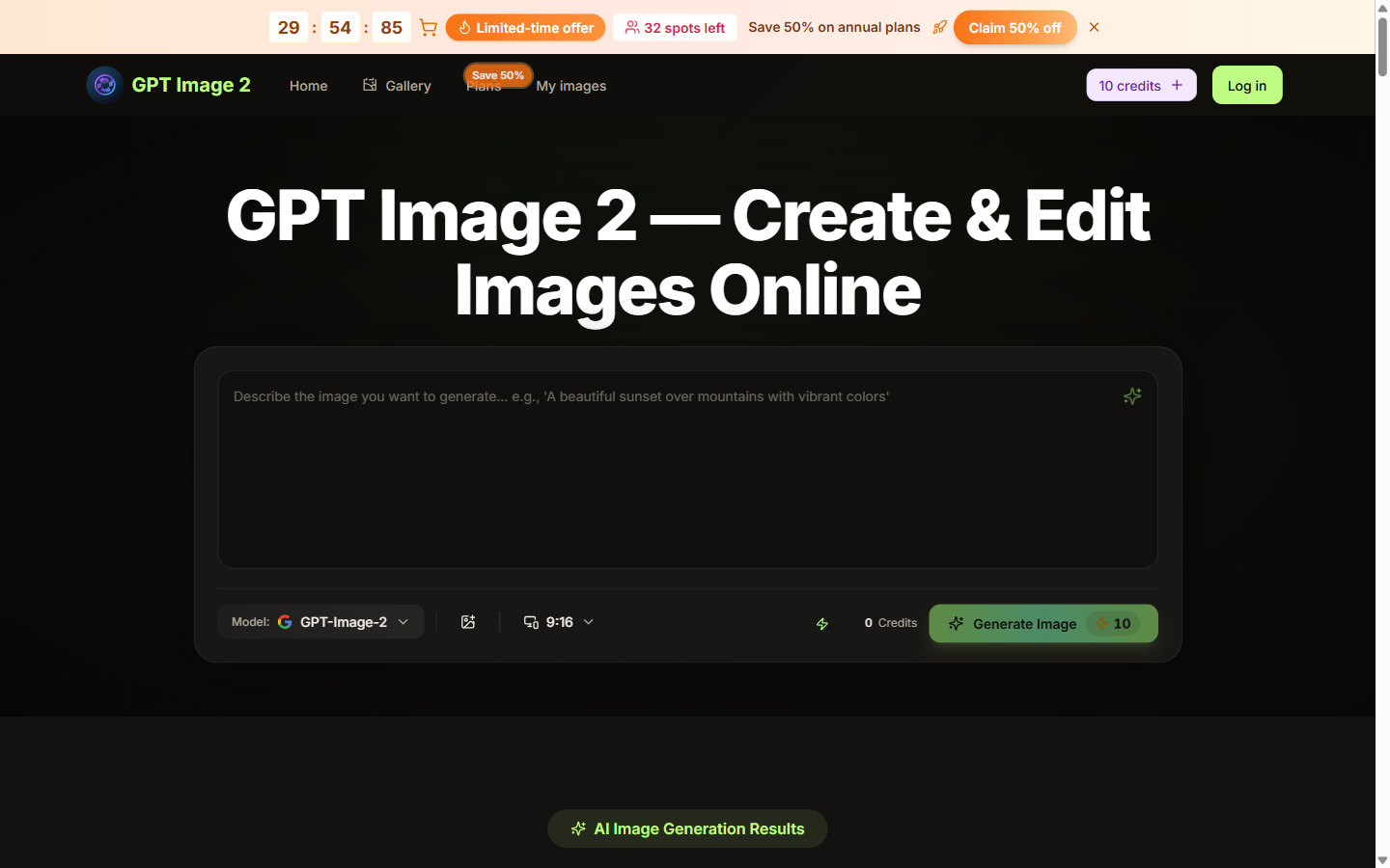 Create and edit AI images online with GPT Image 2. Generate product photos, social graphics, ads, and concept art from text or reference images.