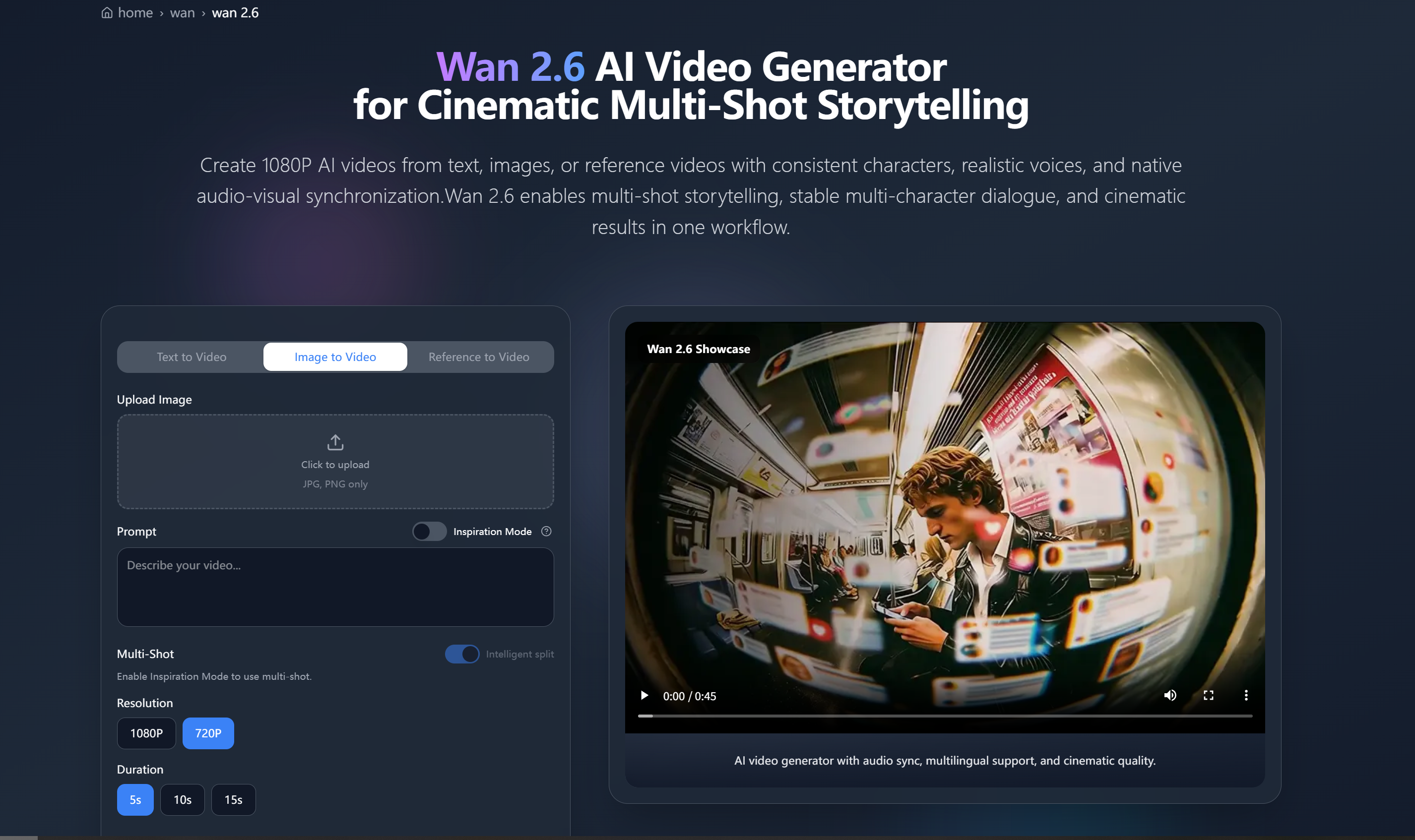 Wan 2.6 by Alibaba creates audio-synced AI videos from text or images. Generate professional 1080p videos at 24fps with perfect lip-sync in minutes.