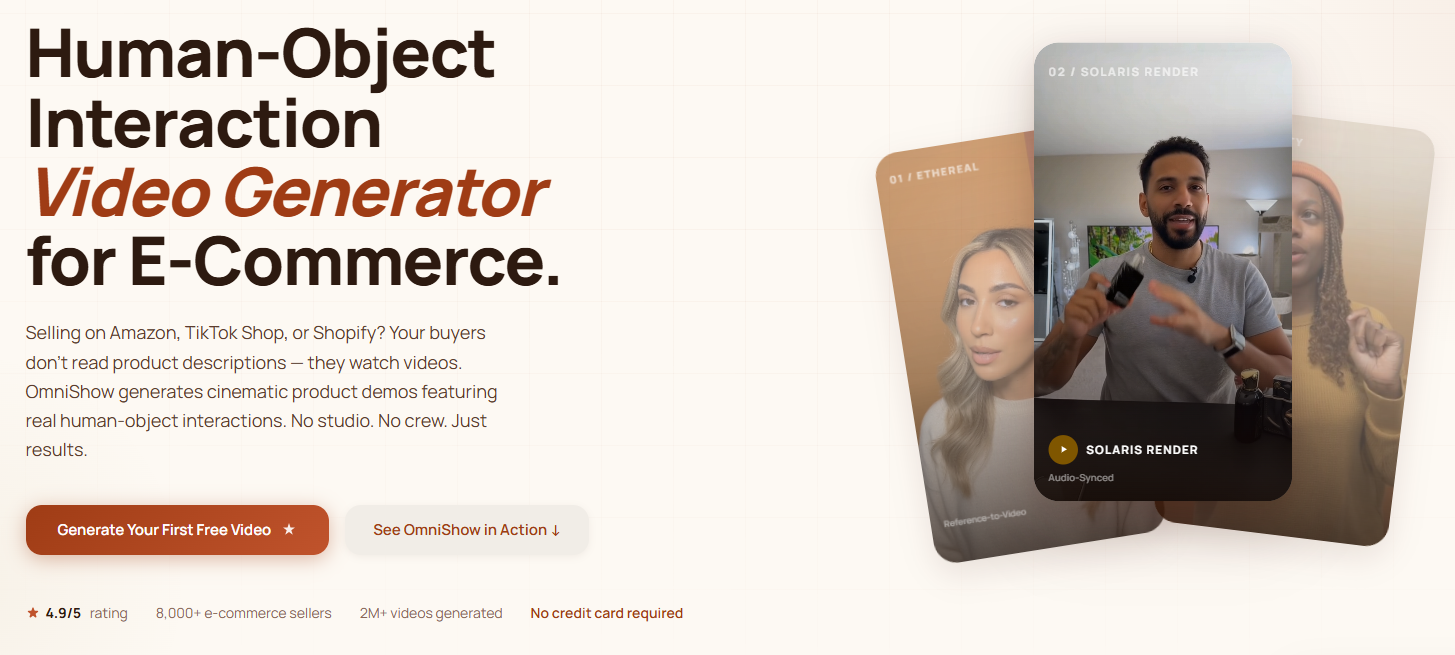 OmniShow is an AI video generation framework that combines text, image, audio, and pose inputs into a single model. It focuses on realistic human-object interaction and more stable motion compared to typical text-to-video systems. The approach also enables better audio-visual synchronization and consistent results across longer clips.