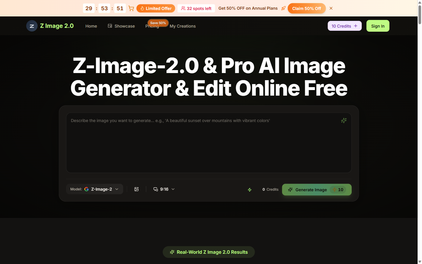 Create 4K AI images in your browser with Z Image 2. Start with Z-Image-2 Online Free, then upgrade when you need more.
